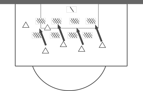 indicates the defenders who are designated areas to mark, the defenders markings are shown as a grid area, it becomes a visual effect within the defender’s mindset, theory wise they could be marking an empty space. Any opposition players which come into their grid mindset zone, they will defend against, players outside of their grid will cause no movement from the defenders, they will remain in position so in relation, a forward could remain unmarked.